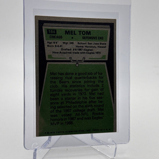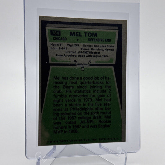 1975 Topps Mel Tom Football Card #184 NM Quality #6 FREE SHIPPING