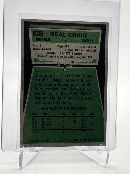 1975 Topps Neal Craig Rookie Football Card #387 NM Quality FREE SHIPPING