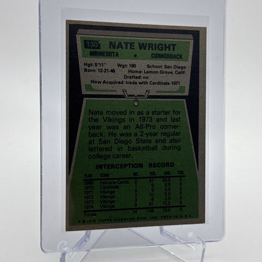 1975 Topps Nate Wright Rookie Football Card #130 NM Quality #3 FREE SHIPPING