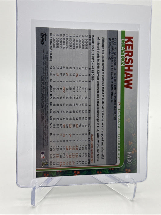 2019 Topps HOLIDAY Clayton Kershaw Baseball Card #HW30 Mint FREE SHIPPING