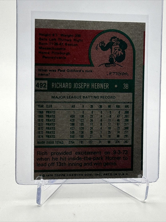 1975 Topps Rich Hebner Baseball Card #492 NM Quality FREE SHIPPING