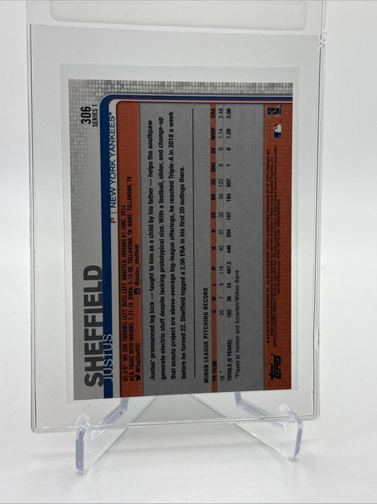 2019 Topps Justus Sheffield Rookie Baseball Card #306 Mint FREE SHIPPING
