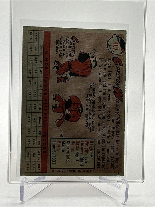 1958 Topps Carlton Willey Rookie Baseball Card #407 EX-MT Quality FREE SHIPPING