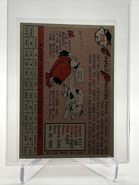 1958 Topps Camilo Pascual Baseball Card #219 EX-MT Quality #2 FREE SHIPPING