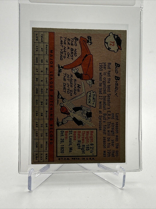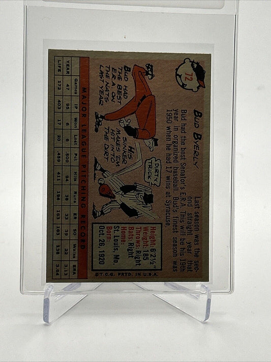 1958 Topps Bud Byerly Baseball Card #72 EX-MT Quality FREE SHIPPING