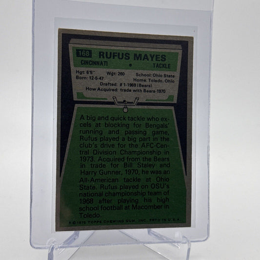 1975 Topps Rufus Mayes Football Card #168 NM Quality #5 FREE SHIPPING