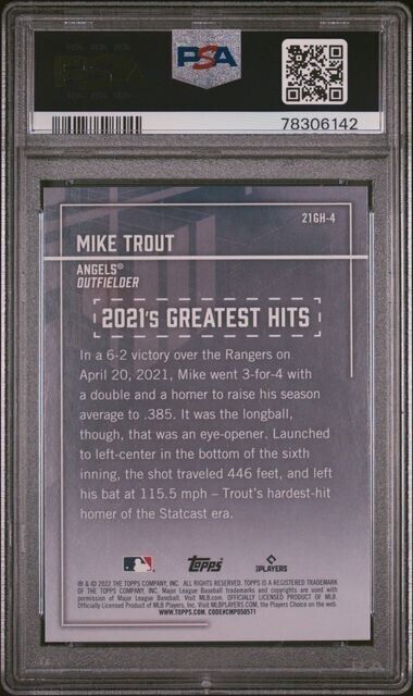 2022 Topps Mike Trout 2021's Greatest Hits Baseball Card #21GH4 PSA 10 Gem Mint