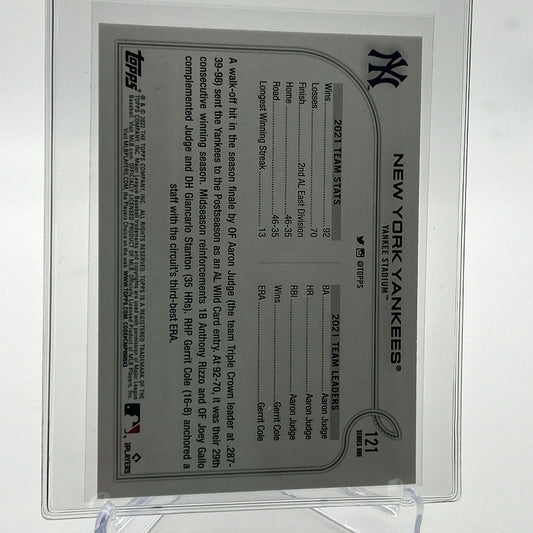2022 Topps New York Yankees Baseball Card #121 Mint FREE SHIPPING