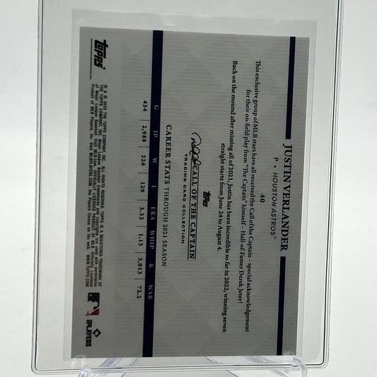 2022 Topps x Derek Jeter Justin Verlander Baseball Card #40 Mint FREE SHIPPING