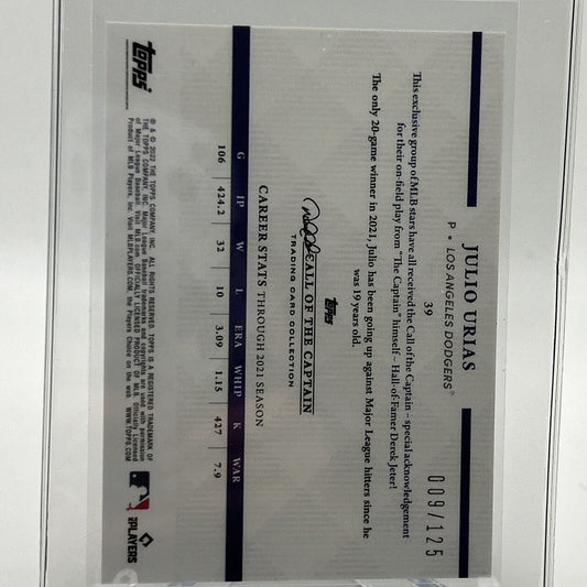 2022 Topps x Derek Jeter Julio Urias 9/125 Baseball Card #39 FREE SHIPPING