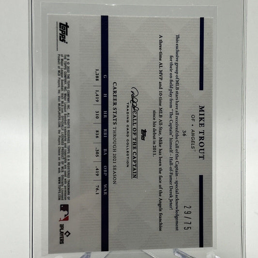 2022 Topps x Derek Jeter Mike Trout 29/75 Baseball Card #36 FREE SHIPPING