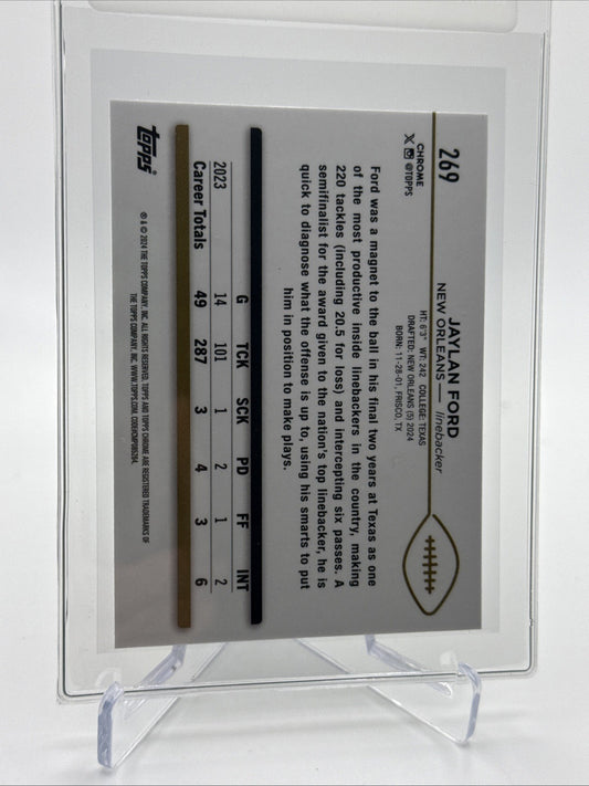 2024 Topps Chrome Jaylan Ford Rookie Football Card #269 Mint FREE SHIPPING