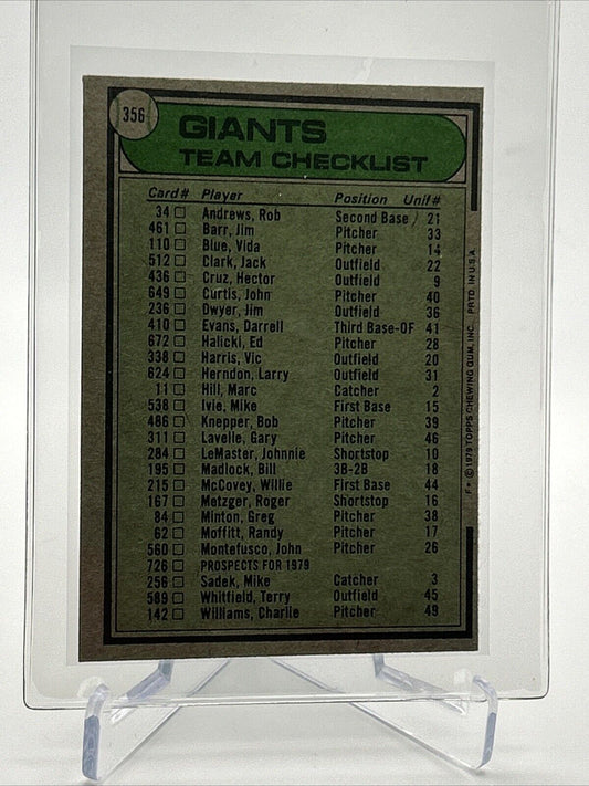 1979 Topps San Francisco Giants/Joe Altobelli Card #356 EX #2 FREE SHIPPING