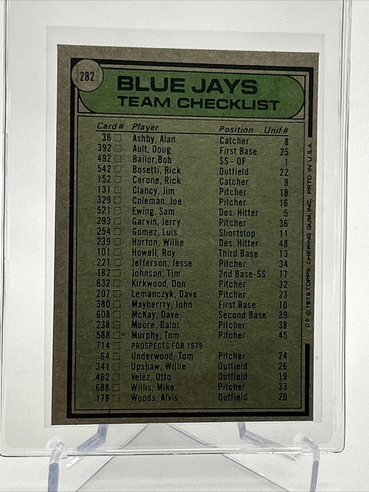 1979 Topps Toronto Blue Jays/Roy Hartsfield Card #282 Near Mint FREE SHIPPING