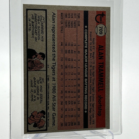 1981 Topps Alan Trammell Baseball Card #709 NM-Mint FREE SHIPPING