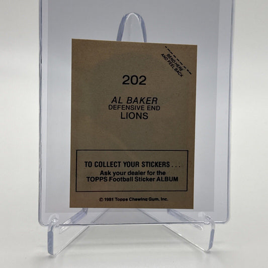 1981 Topps Al Baker Football Sticker Card #202 NM-MT FREE SHIPPING