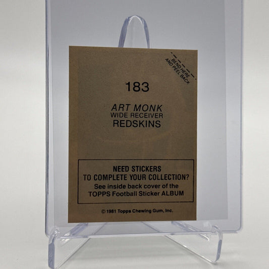 1981 Topps Art Monk Football Sticker Card #183 NM-MT FREE SHIPPING