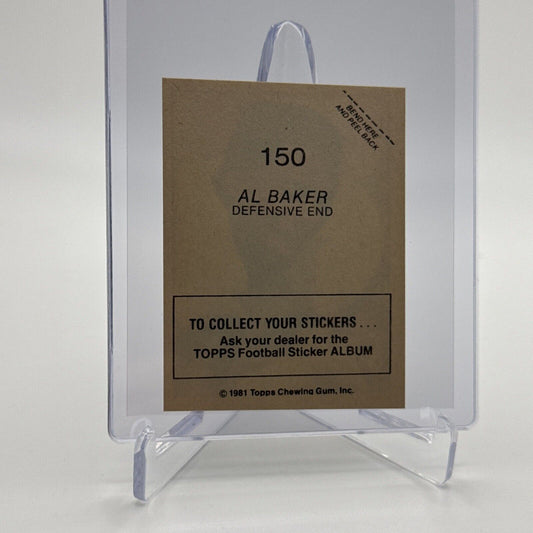 1981 Topps Al Baker Football Sticker Card #150 NM-MT FREE SHIPPING