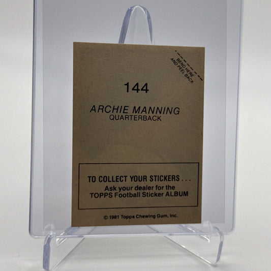 1981 Topps Archie Manning Football Sticker Card #144 NM-MT FREE SHIPPING