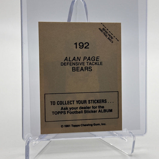 1981 Topps Alan Page Football Sticker Card #192 NM-MT FREE SHIPPING