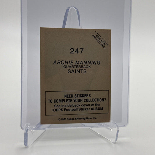 1981 Topps Archie Manning Football Sticker Card #247 NM-MT FREE SHIPPING