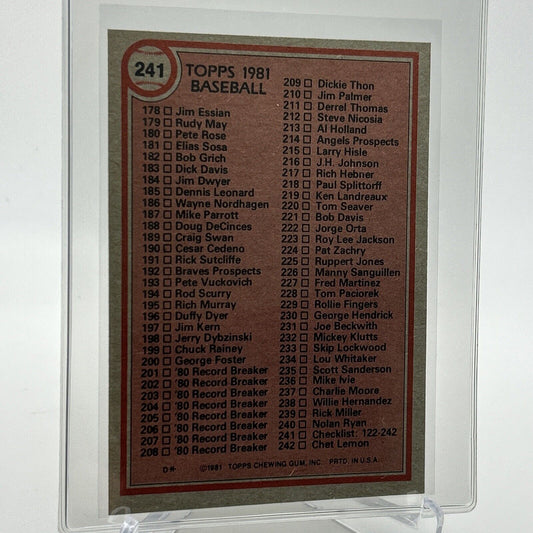 1981 Topps Checklist: 122-242 Baseball Card #241 NM-Mint FREE SHIPPING