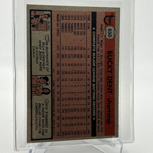 1981 Topps Bucky Dent Baseball Card #650 NM-Mint FREE SHIPPING