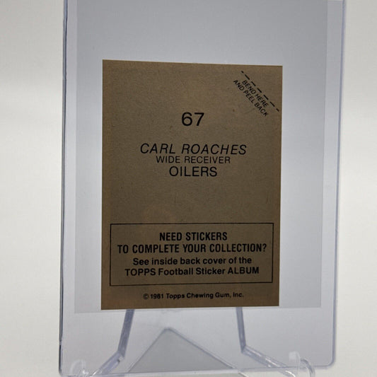 1981 Topps Carl Roaches Football Sticker Card #67 NM-MT FREE SHIPPING