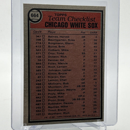 1981 Topps Chicago White Sox Checklist Baseball Card #664 NM-Mint FREE SHIPPING