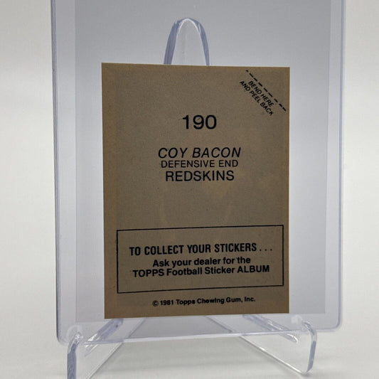 1981 Topps Coy Bacon Football Sticker Card #190 NM-MT FREE SHIPPING