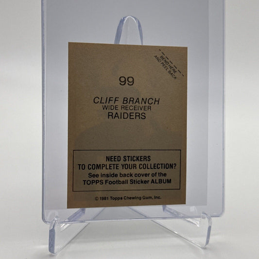 1981 Topps Cliff Branch Football Sticker Card #99 NM-MT FREE SHIPPING
