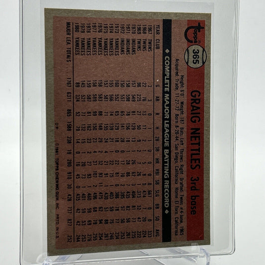 1981 Topps Graig Nettles Baseball Card #365 NM-Mint FREE SHIPPING
