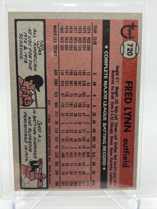 1981 Topps Fred Lynn Baseball Card #720 NM-Mint FREE SHIPPING