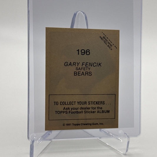 1981 Topps Gary Fencik Football Sticker Card #196 NM-MT FREE SHIPPING