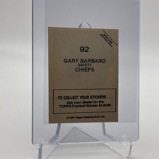 1981 Topps Gary Barbaro Football Sticker Card #92 NM-MT FREE SHIPPING