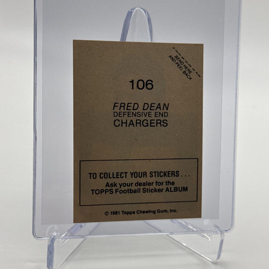 1981 Topps Fred Dean Football Sticker Card #106 NM-MT FREE SHIPPING