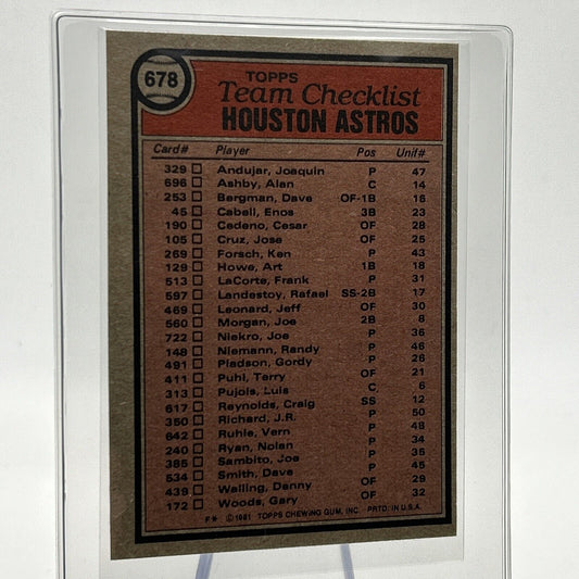 1981 Topps Houston Astros Checklist Baseball Card #678 NM-Mint FREE SHIPPING