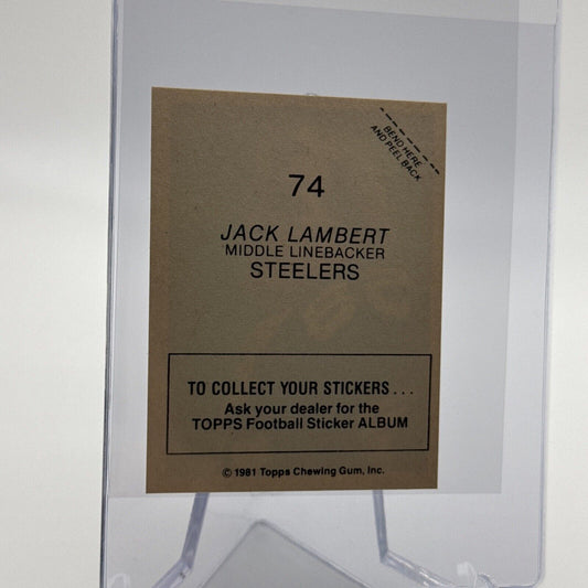 1981 Topps Jack Lambert Football Sticker Card #74 NM-MT FREE SHIPPING