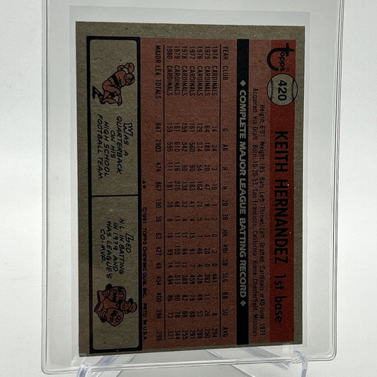 1981 Topps Keith Hernandez Baseball Card #420 NM-Mint FREE SHIPPING