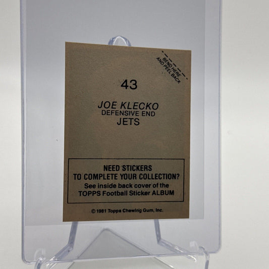 1981 Topps Joe Klecko Football Sticker Card #43 NM-MT FREE SHIPPING