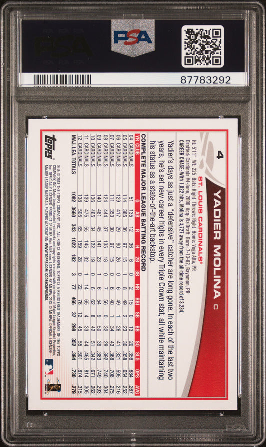 2013 Topps Baseball Yadier Molina #4 PSA 9 87783292