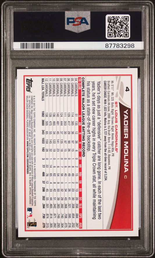 2013 Topps Baseball Yadier Molina #4 PSA 9 87783298