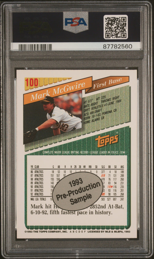 1993 Topps Pre-Production Baseball Mark Mcgwire #100 PSA 10 87782560