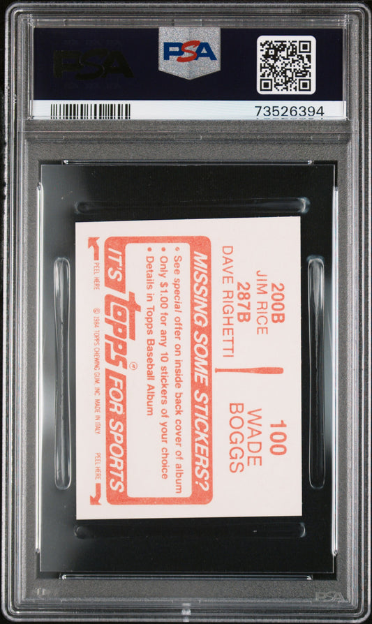 1984 Topps Stickers Baseball Wade Boggs-100 Psa 9 73526394