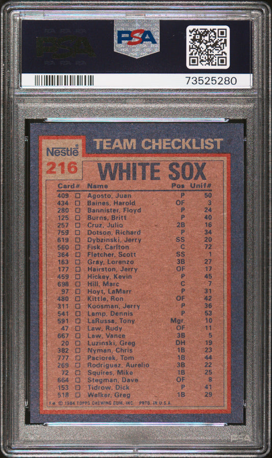 1984 Topps Nestle Hand Cut Baseball C/fisk/r/dotson #216 Psa 9 73525280