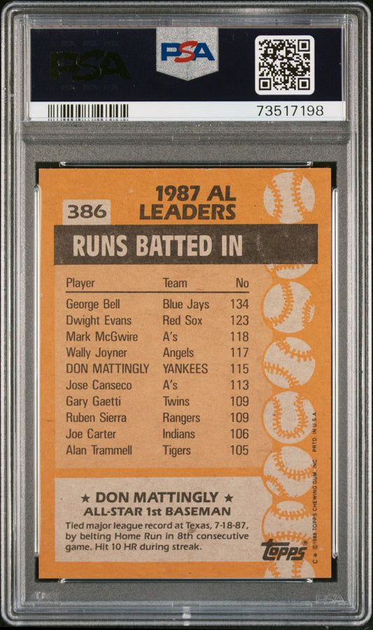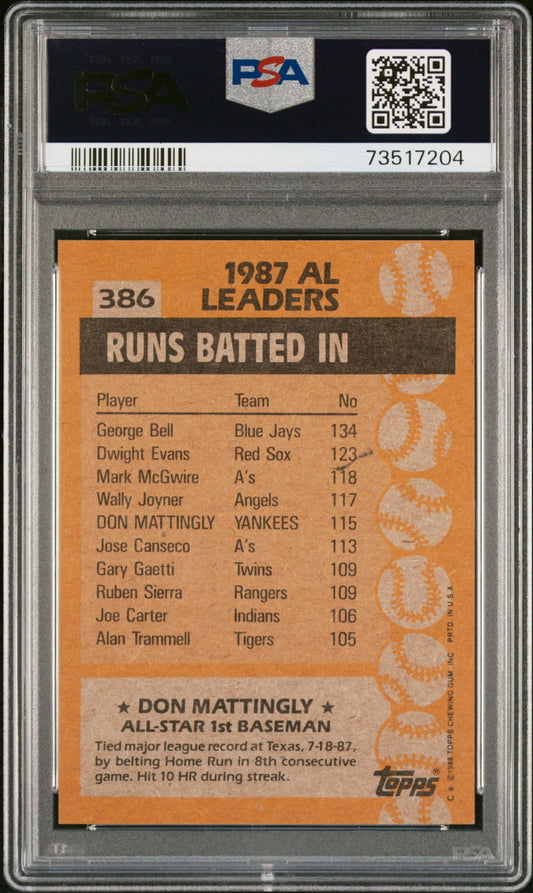 1988 Topps Baseball Don Mattingly #386 Psa 9 73517200