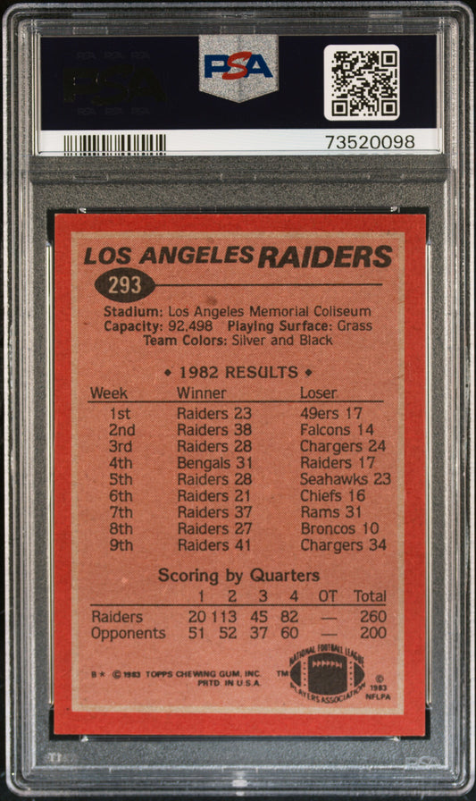 1983 Topps Football Raiders Team Leaders #293 Psa 9 73520098Vendor:ToppsRegular price $40.46 USDRegular priceUnit price / per-