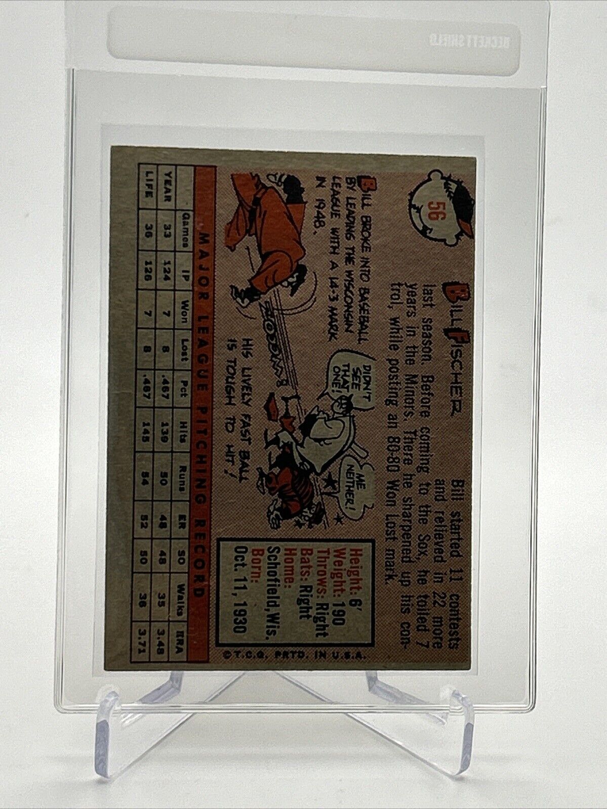 1958 Topps Bill Fischer Rookie Baseball Card #56 EX Quality #3 FREE SHIPPING