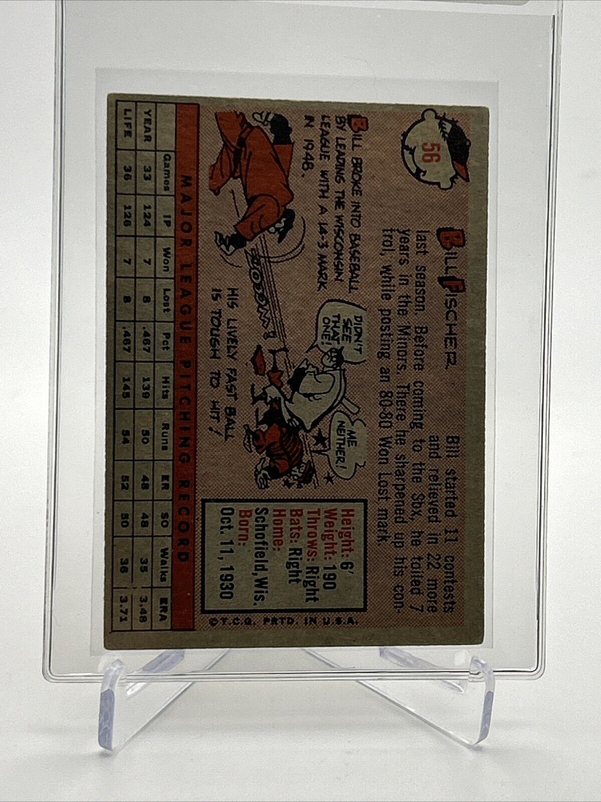 1958 Topps Bill Fischer Rookie Baseball Card #56 EX Quality #5 FREE SHIPPING