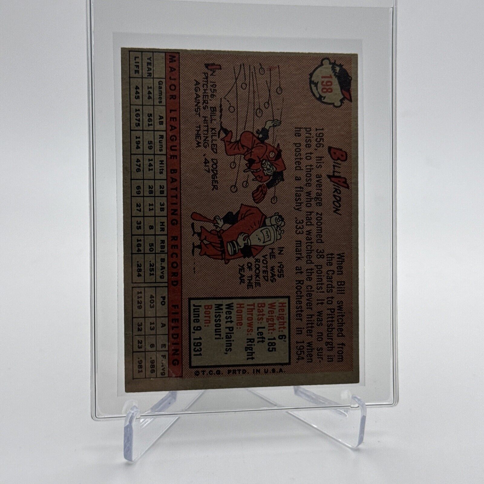1958 Topps Bill Virdon Baseball Card #198 EX Quality #2 FREE SHIPPING
